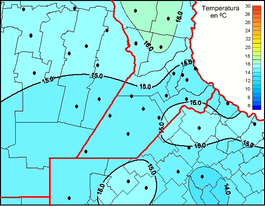 Mapa de temperaturas medias de las las últimas 72 horas.