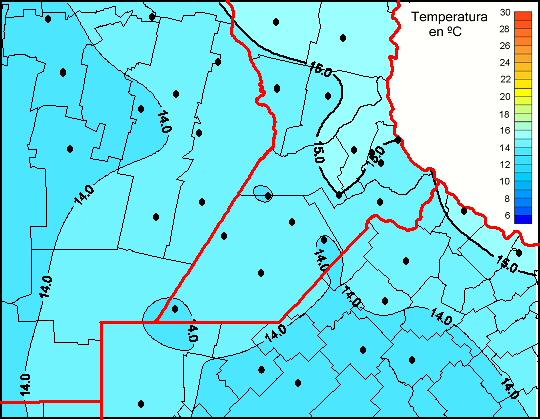 Mapa de temperaturas medias de las las últimas 96 horas.(Desde las 8:00AM hasta las 8:00AM). Se actualiza a las 10:00hs.