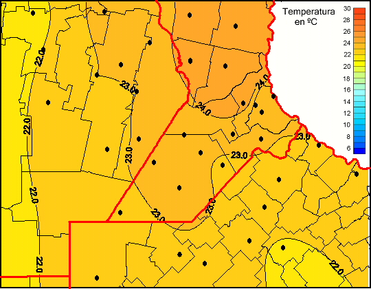 Mapa de temperaturas medias de las las últimas 72 horas.