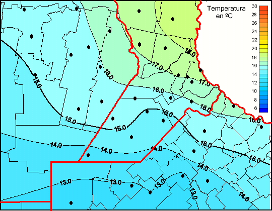 Mapa de temperaturas medias de las las últimas 24 horas.