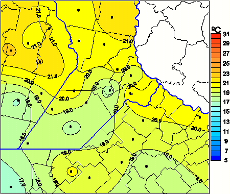 Mapa de temperaturas medias de las las últimas 72 horas.(Desde las 8:00AM hasta las 8:00AM). Se actualiza a las 10:00hs.