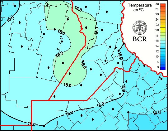Mapa de temperaturas medias de las las últimas 24 horas.
