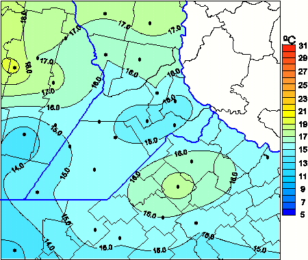 Mapa de temperaturas medias de las las últimas 48 horas.(Desde las 8:00AM hasta las 8:00AM). Se actualiza a las 10:00hs.