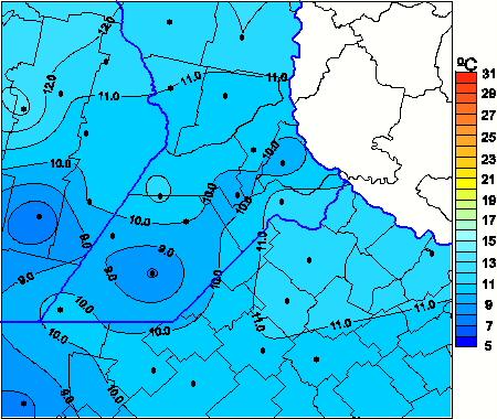 Mapa de temperaturas medias de las las últimas 72 horas.