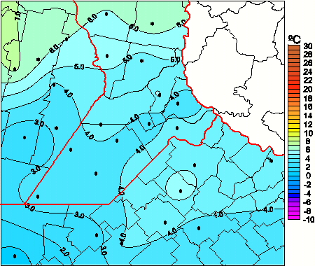 Mapa de temperaturas medias de las las últimas 72 horas.(Desde las 8:00AM hasta las 8:00AM). Se actualiza a las 10:00hs.