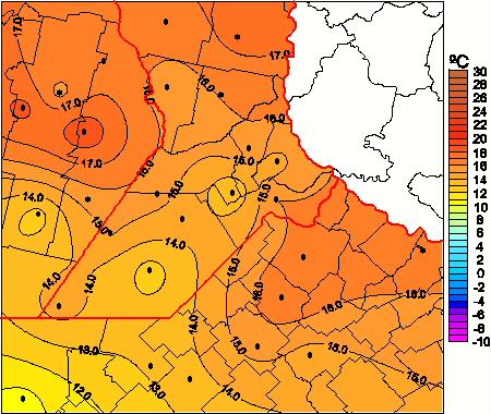 Mapa de temperaturas medias de las las últimas 72 horas.(Desde las 8:00AM hasta las 8:00AM). Se actualiza a las 10:00hs.