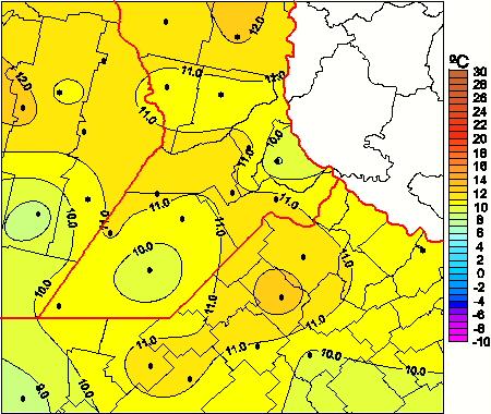Mapa de temperaturas medias de las las últimas 72 horas.