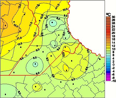 Mapa de temperaturas medias de las las últimas 72 horas.