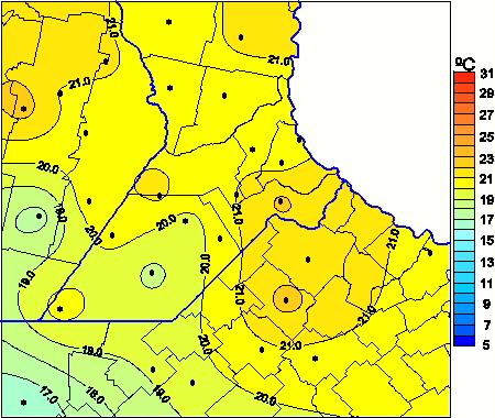 Mapa de temperaturas medias de las las últimas 72 horas.(Desde las 8:00AM hasta las 8:00AM). Se actualiza a las 10:00hs.