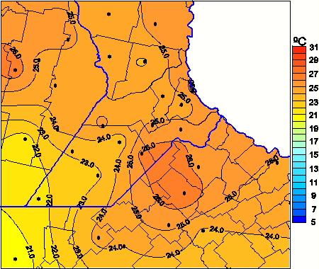 Mapa de temperaturas medias de las las últimas 96 horas.(Desde las 8:00AM hasta las 8:00AM). Se actualiza a las 10:00hs.