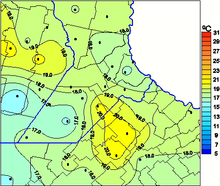 Mapa de temperaturas medias de las las últimas 72 horas.