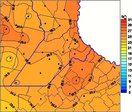 Mapa de temperaturas medias de las las últimas 72 horas.