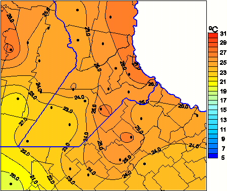 Mapa de temperaturas medias de las las últimas 96 horas.(Desde las 8:00AM hasta las 8:00AM). Se actualiza a las 10:00hs.