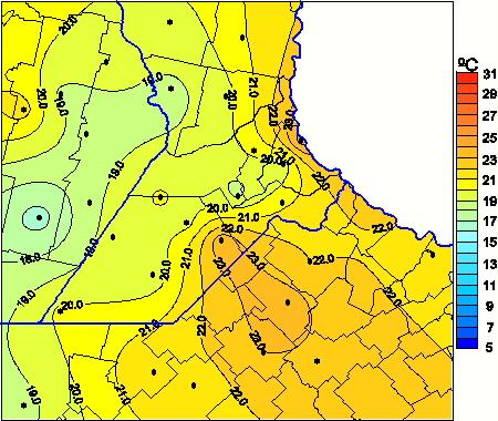 Mapa de temperaturas medias de las las últimas 72 horas.(Desde las 8:00AM hasta las 8:00AM). Se actualiza a las 10:00hs.