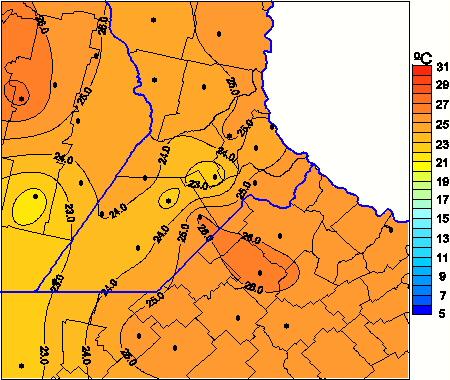 Mapa de temperaturas medias de las las últimas 72 horas.