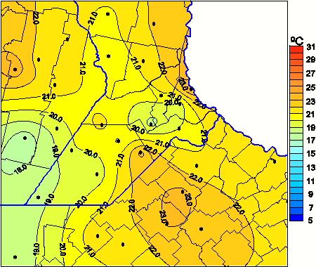 Mapa de temperaturas medias de las las últimas 72 horas.(Desde las 8:00AM hasta las 8:00AM). Se actualiza a las 10:00hs.