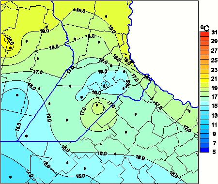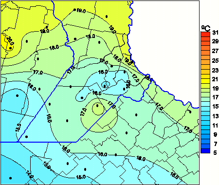 Mapa de temperaturas medias de las las últimas 72 horas.