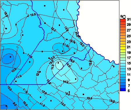 Mapa de temperaturas medias de las las últimas 72 horas.(Desde las 8:00AM hasta las 8:00AM). Se actualiza a las 10:00hs.