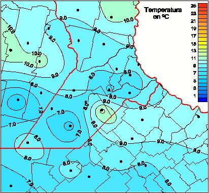 Mapa de temperaturas medias de las las últimas 96 horas.(Desde las 8:00AM hasta las 8:00AM). Se actualiza a las 10:00hs.