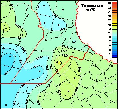 Mapa de temperaturas medias de las las últimas 72 horas.