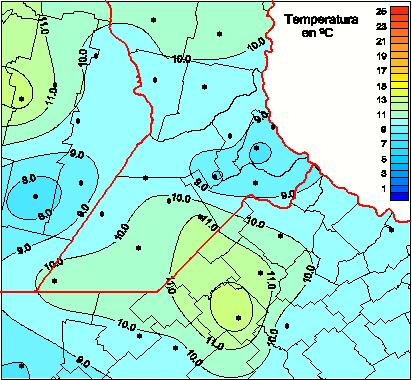 Mapa de temperaturas medias de las las últimas 48 horas.(Desde las 8:00AM hasta las 8:00AM). Se actualiza a las 10:00hs.