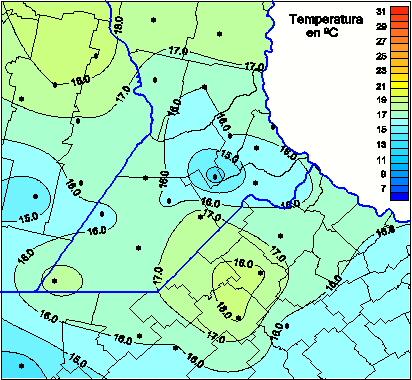 Mapa de temperaturas medias de las las últimas 96 horas.(Desde las 8:00AM hasta las 8:00AM). Se actualiza a las 10:00hs.