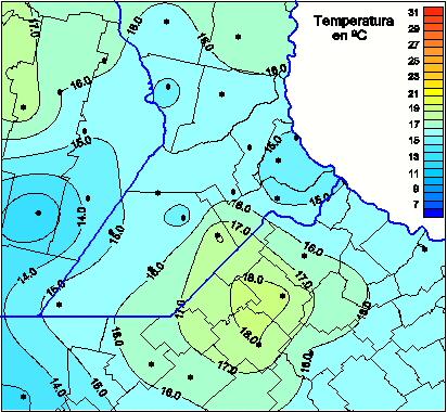 Mapa de temperaturas medias de las las últimas 72 horas.(Desde las 8:00AM hasta las 8:00AM). Se actualiza a las 10:00hs.