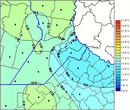 Mapa de temperaturas medias de las las últimas 72 horas.