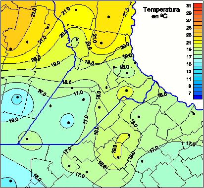 Mapa de temperaturas medias de las las últimas 72 horas.(Desde las 8:00AM hasta las 8:00AM). Se actualiza a las 10:00hs.
