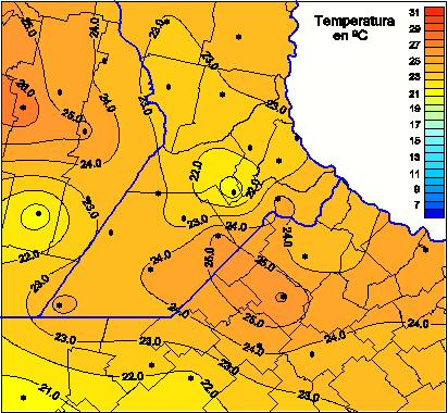 Mapa de temperaturas medias de las las últimas 96 horas.(Desde las 8:00AM hasta las 8:00AM). Se actualiza a las 10:00hs.