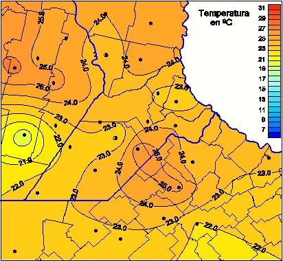 Mapa de temperaturas medias de las las últimas 72 horas.(Desde las 8:00AM hasta las 8:00AM). Se actualiza a las 10:00hs.