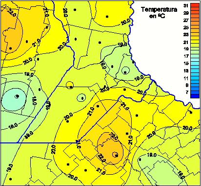 Mapa de temperaturas medias de las las últimas 72 horas.(Desde las 8:00AM hasta las 8:00AM). Se actualiza a las 10:00hs.