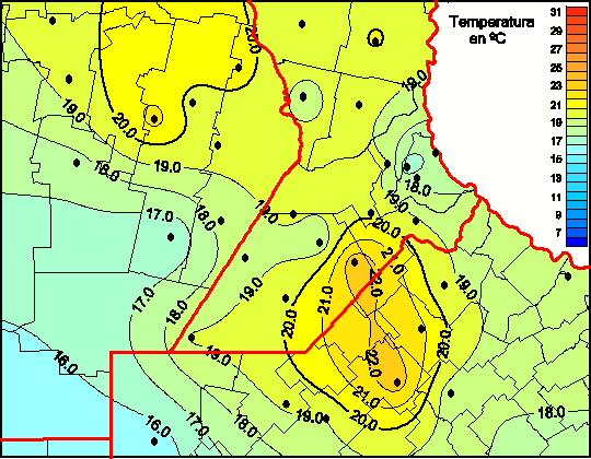 Mapa de temperaturas medias de las las últimas 72 horas.