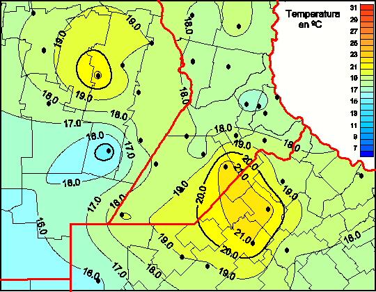Mapa de temperaturas medias de las las últimas 72 horas.(Desde las 8:00AM hasta las 8:00AM). Se actualiza a las 10:00hs.