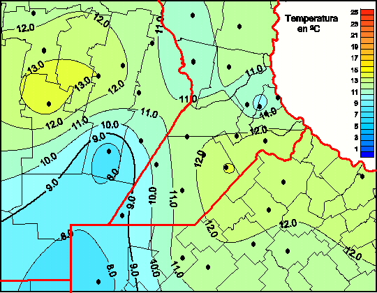 Mapa de temperaturas medias de las las últimas 72 horas.