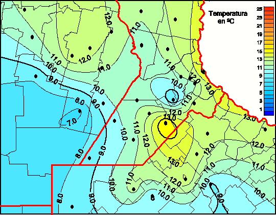 Mapa de temperaturas medias de las las últimas 72 horas.(Desde las 8:00AM hasta las 8:00AM). Se actualiza a las 10:00hs.