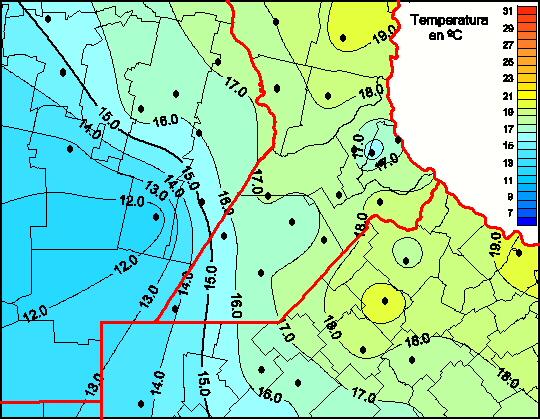 Mapa de temperaturas medias de las las últimas 72 horas.(Desde las 8:00AM hasta las 8:00AM). Se actualiza a las 10:00hs.