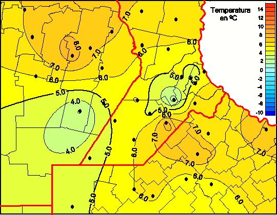 Mapa de temperaturas medias de las las últimas 72 horas.