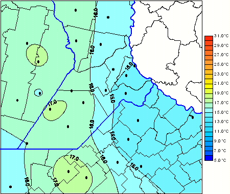 Mapa de temperaturas medias de las las últimas 96 horas.(Desde las 8:00AM hasta las 8:00AM). Se actualiza a las 10:00hs.