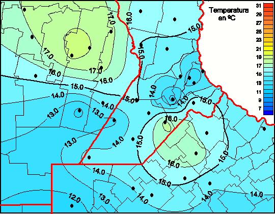 Mapa de temperaturas medias de las las últimas 72 horas.