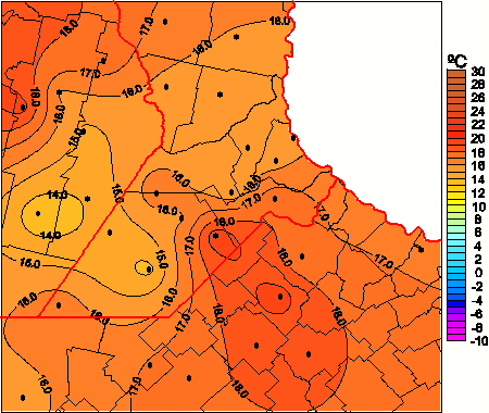 Mapa de temperaturas mínimas de las las últimas 72 horas.