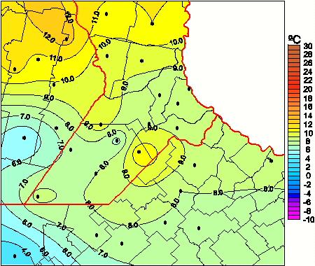 Mapa de temperaturas mínimas de las las últimas 72 horas.