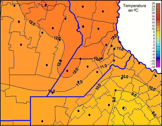 Mapa de temperaturas mínimas de las las últimas 72 horas.