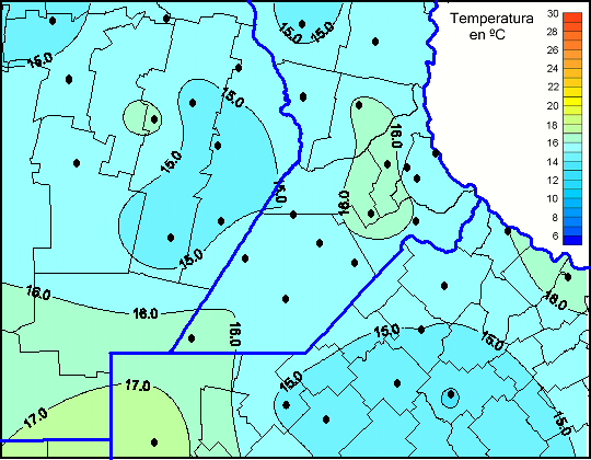 Mapa de temperaturas mínimas de las las últimas 120 horas.
