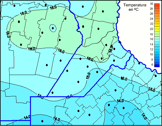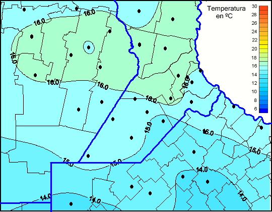 Mapa de temperaturas mínimas de las las últimas 120 horas.(Desde las 8:00AM hasta las 8:00AM). Se actualiza a las 10:00hs.