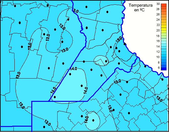Mapa de temperaturas mínimas de las las últimas 72 horas.