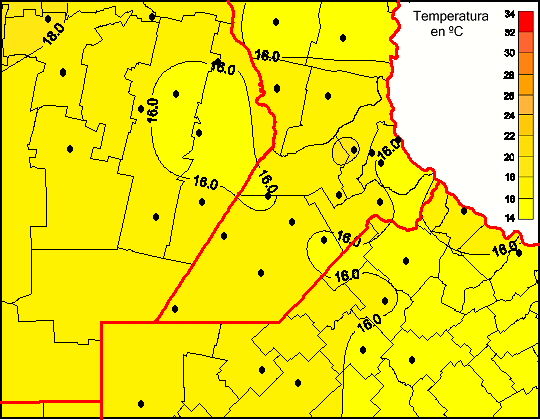 Mapa de temperaturas mínimas de las últimas 24 horas.