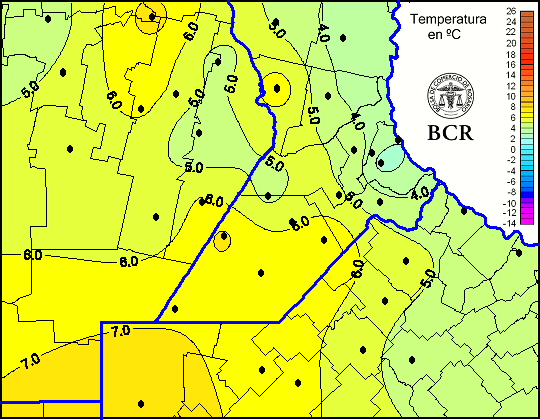 Mapa de temperaturas mínimas de las últimas 24 horas.