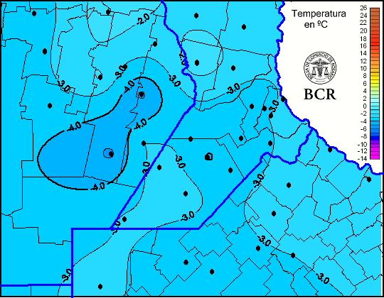 Mapa de temperaturas mínimas de las últimas 24 horas.