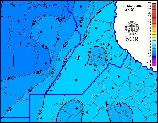Mapa de temperaturas mínimas de las últimas 24 horas.